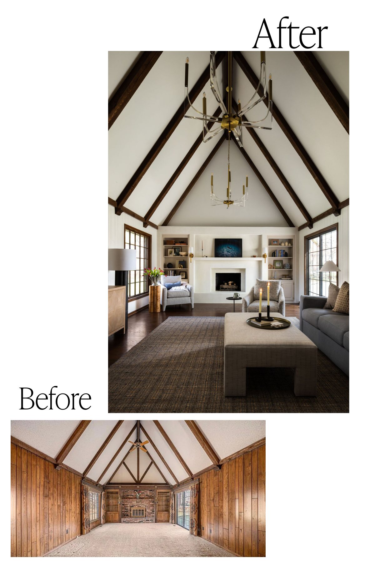 Editing is one of the most important design skills. Knowing what to remove is just as important as knowing what to add. In this room, the ceiling had been hiding in plain sight. Now it's exactly what you notice first.